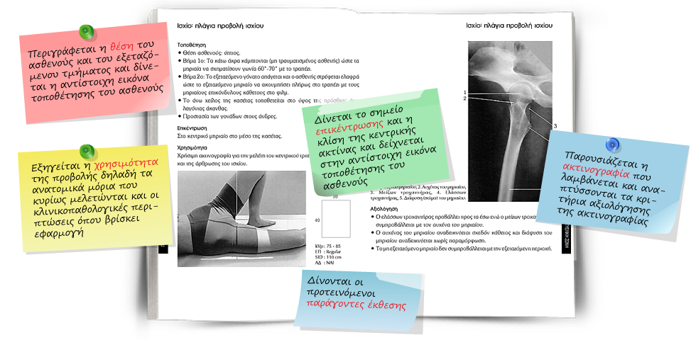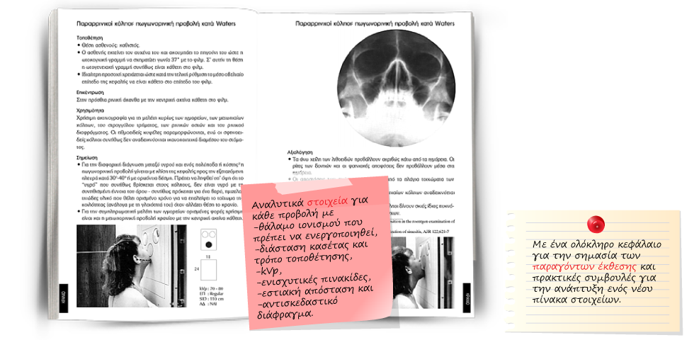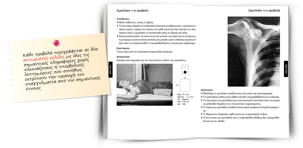 Σε μικρό πρακτικό σχήμα τσέπης με αναλυτική περιγραφή κάθε προβολής με κατατοπιστικό κείμενο, διαφωτιστικές φωτογραφίες και ακτινογραφίες υψηλής ποιότητας. Με όλες τις νέες προβολές που χρησιμοποιούνται ευρέως στην σύγχρονη βιβλιογραφία.